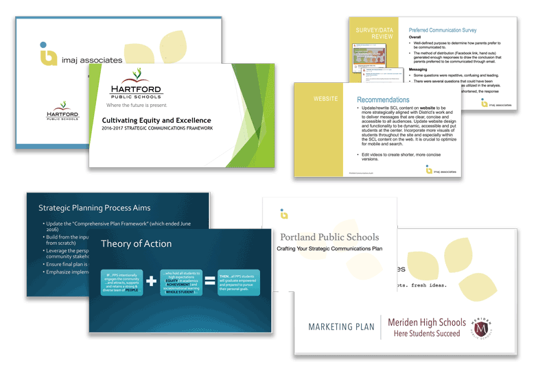 Our work to date with the districts including Hartford and Meriden, CT; Revere MA; Pittsfield, NH; Portland ME; and Burlington and Winooski, VT has afforded the schools the ability to engage their communities in developing a greater understanding and a deeper appreciation of the schools’ efforts to become places of student-centered learning. To this end, Imaj has provided direct communications counsel to district leadership, conducted workshops with school leaders and other staff focused on developing strategic communications plans, produced several videos and created educational materials. Our work has been highly valued by the districts; each has requested that NMEF continue to retain Imaj to provide communications support for their work through 2016-2017.